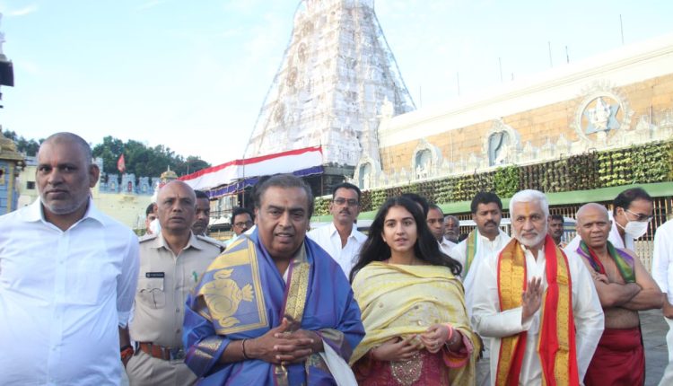 ତିରୁମାଲା ତିରୁପତି ଦେବସ୍ଥାନମ ମନ୍ଦିରରେ ପ୍ରଭୁ ଶ୍ରୀଭେଙ୍କଟେଶ୍ୱରଙ୍କ ଦର୍ଶନ ଓ ପୂଜାର୍ଚ୍ଚନା କଲେ ରିଲାଏନ୍ସ ଇଣ୍ଡଷ୍ଟ୍ରିଜର ଅଧ୍ୟକ୍ଷ ମୁକେଶ ଅମ୍ବାନୀ ତିରୁପତି