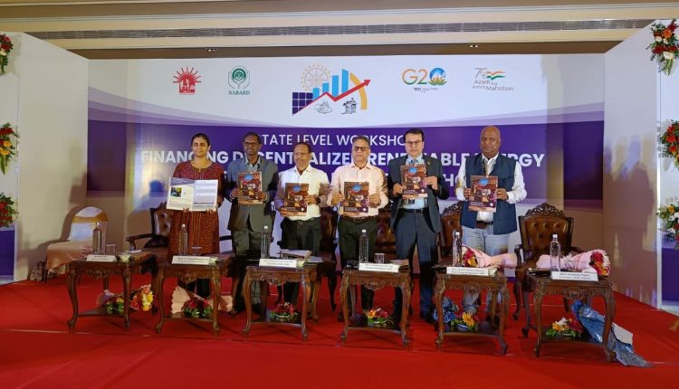 Bhubaneswar, 22.06.23 (Pratyusha Bureau):State level Workshop on Financing Decentralized Renewable Energy (DRE) based Sustainable Livelihoods .NABARD Odisha RO organised a State level workshop on Financing Decentralized Renewable Energy based Sustainable Livelihoods in collaboration with the SELCO foundation on 22.06.2023. The meeting was graced by Shri. Pradeep Kumar Jena, IAS, Chief Secretary and Chief Development Commissioner, Govt. of Odisha and attended by Shri. Vishal Kumar Dev, IAS, Finance Secretary, Govt. of Odisha, Shri. C Udayabhaskar, CGM NABARD, Shri. Chandershekhar Sharma, CGM, SBI, Shri. Goutam Patra, Convener SLBC, Ms. Huda Jaffer, Director SELCO Foundation, Shri Rishi Singh, Chairman, Odisha Gramya Bank, Senior Bankers from all the leading commercial banks in the State, all LDMs, Team DOR Odisha RO along with the budding Entrepreneurs and representatives of Start- ups in the field of DRE based activities.