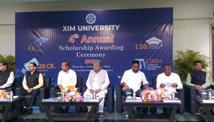 Bhubaneswar, 10 February 2024 ( Pratyusha Bureau ):XIM University successfully conducted its 4th Scholarship Awarding Ceremony for undergraduate students on 10th February 2024. XIM University’s undergraduate degree program boasts a globally aligned curriculum, encompassing a diverse range of courses that establish a solid foundation for students to realize their career aspirations. Reflecting its commitment to excellence and quality, the university has instituted a Scholarship Programme specifically tailored to support academically outstanding students for their undergraduate studies. These financial resources serve to empower students, providing them with the means to excel academically and lay the groundwork for successful careers. This year, the University was proud to offer scholarships to 136 students out of all the students enrolled in 10 undergraduate courses from 08 different schools. The total value of scholarships offered was more than 1.20 crore rupees. In this occasion was graced by the Odisha Legislative Assembly Member Hon’ ble Prafulla Samal, Chief Guest & Rudra Pratap Maharathi Guest of honour for the ceremony. They expressed that the mantra for success and a good life is to “Embrace Growth, Pursue Excellence and Lead with Integrity”. Shri. Rudra Pratap Maharathy, Hon’ble Member of Odisha Legislative Assembly who graced the occasion as the Guest of Honor aptly stated that “Education is not preparation for life; Education is life itself.” Among other distinguished personalities present were Fr. Antony R. Uvari, S.J., Vice- Chancellor, XIM University Bhubaneswar, Fr. S. Antony Raj, S.J., Registrar, XIM University Bhubaneswar, Fr. V. Arokiyadass, S.J, Chief Finance Officer, XIM University Bhubaneswar and Chairperson of the UG Scholarship Committee, XIM University along with the Academic Deans, faculty, and staff members of the University. The concluding vote of thanks by Fr. S. Antony Raj, S.J. acknowledged the collective efforts and commitment of the University in nurturing a supportive learning environment and ensuring equity in educational outcomes.