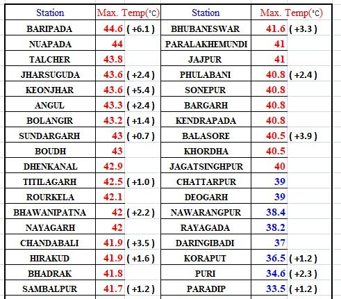 ବାରିପଦା ସବୁଠୁ ଉତ୍ତପ୍ତ ସହର । ଓଡିଶା By Pratyusha News Last updated Apr 21, 2024 0 316 Share ଭୁବନେଶ୍ଵର ୨୧/୪/୨୦୨୪( ପ୍ରତ୍ୟୁଷା ବ୍ୟୁରୋ ):44.6°C ସହ ବାରିପଦା ରାଜ୍ୟର ଉତ୍ତପ୍ତ ସହର* *9ସହର ରେ ତାପମାତ୍ରା 43ଡ଼ିଗ୍ରୀ କିମ୍ବା ଅଧିକ ତାପମାତ୍ରା ରେକର୍ଡ । ପୁଣି 30 ସହର ରେ ତାପମାତ୍ରା 40ଡ଼ିଗ୍ରୀ କିମ୍ବା ଅଧିକ ରେକର୍ଡ । 0 316 Share FacebookTwitterGoogle+ReddItWhatsAppPinterestEmail
