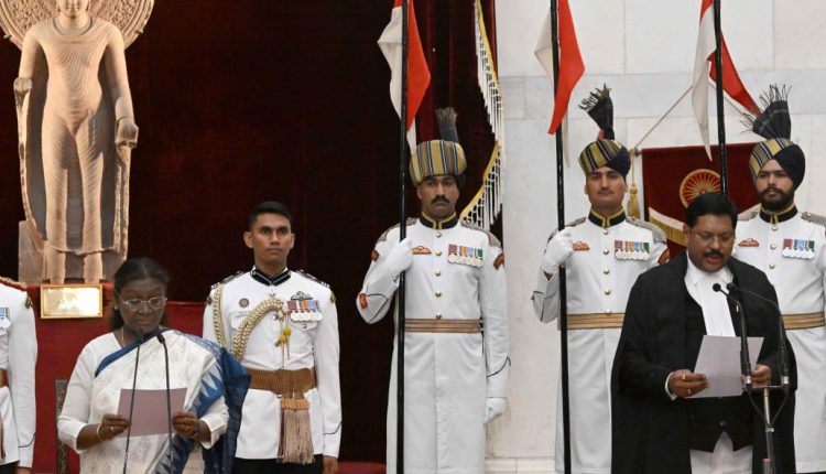 At a ceremony held today (May14, 2025) at 1000 hrs in the GanatantralMandap, Rashtrapati Bhavan, ShriJustice Bhushan Ramkrishna Gavaiwas sworn in as the Chief Justice ofthe Supreme Court of India. He madeand subscribed to the oath of officebefore the President.