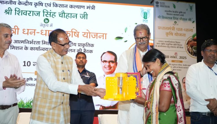 Bhubaneswar: 10 Nov 2025 ,( Pratyusha bureau )The Hon’ble Union Minister for Agriculture and Farmers’ WelfareShri Shivraj Singh Chouhan chaired a high-level meeting on”Convergence Strategies for Implementation of PM Dhan-Dhanya KrishiYojana, Mission for Atmanirbharta in Pulses and National Mission forNatural Farming” during his visit to ICAR-Central Rice ResearchInstitute, Cuttack on 10th November 2025. Shri Kanak Vardhan SinghDeo, Hon’ble Deputy Chief Mnister, Govt. of Odisha graced the occasionas special guest. Dr. M.L. Jat, Secretary, Department of AgriculturalResearch and Education, Dr. Devesh Chaturvedi, Additional Secretary,DARE & Secretary, ICAR joined virtually. Smt. F. Deborah Initha, JointSecretary (Crops), Govt. of India, Dr. D.K. Yadav, Deputy DirectorGeneral (Crop Science); Dr A.K. Nayak, Deputy Director General(Natural Resources Management); Dr. N.P. Dixit, Director, Indian Instituteof Pulse Research, Scientists, officers from state governmentdepartments and about 400 farmers participated in the meeting.The Hon’ble Union Minister stated that central governmentschemes, in collaboration with the state government, will significantlytransform the lives of farmers. He highlighted that Odisha is makingremarkable progress in vegetable cultivation through natural farming.He emphasized efforts to ensure farmers receive fair prices for theirproduce. The Hon’ble Minister encouraged the large-scale production ofpulses in Odisha for its favorable climate. He urged farmers to moveaway from toxic chemicals and adopt natural and integrated farmingpractices, including animal husbandry, fisheries, and poultry. During hisvisit to Rajhans village in Cuttack Sadar, the Hon’ble Minister interactedwith farmers to understand their agricultural challenges and advisedthem to diversify their crops beyond rice and vegetables, including seedproduction.Shri Kanak Vardhan Singh Deo, Deputy Chief Minister andAgriculture Minister, Government of Odisha in his address said that theState of Odisha is working jointly for the betterment of agriculturethrough Central Government sponsored schemes, financial andtechnical assistance, decentralized schemes, policy convergence andcoordinated implementation of various programmes.Dr. M.L. Jat, Secretary, DARE & Director General of ICAR, statedthat Odisha has a vast biodiversity structure. Currently, Odisha isemphasizing natural farming, and ICAR has undertaken domain work for this. Very soon, the domain of natural farming will be integrated with