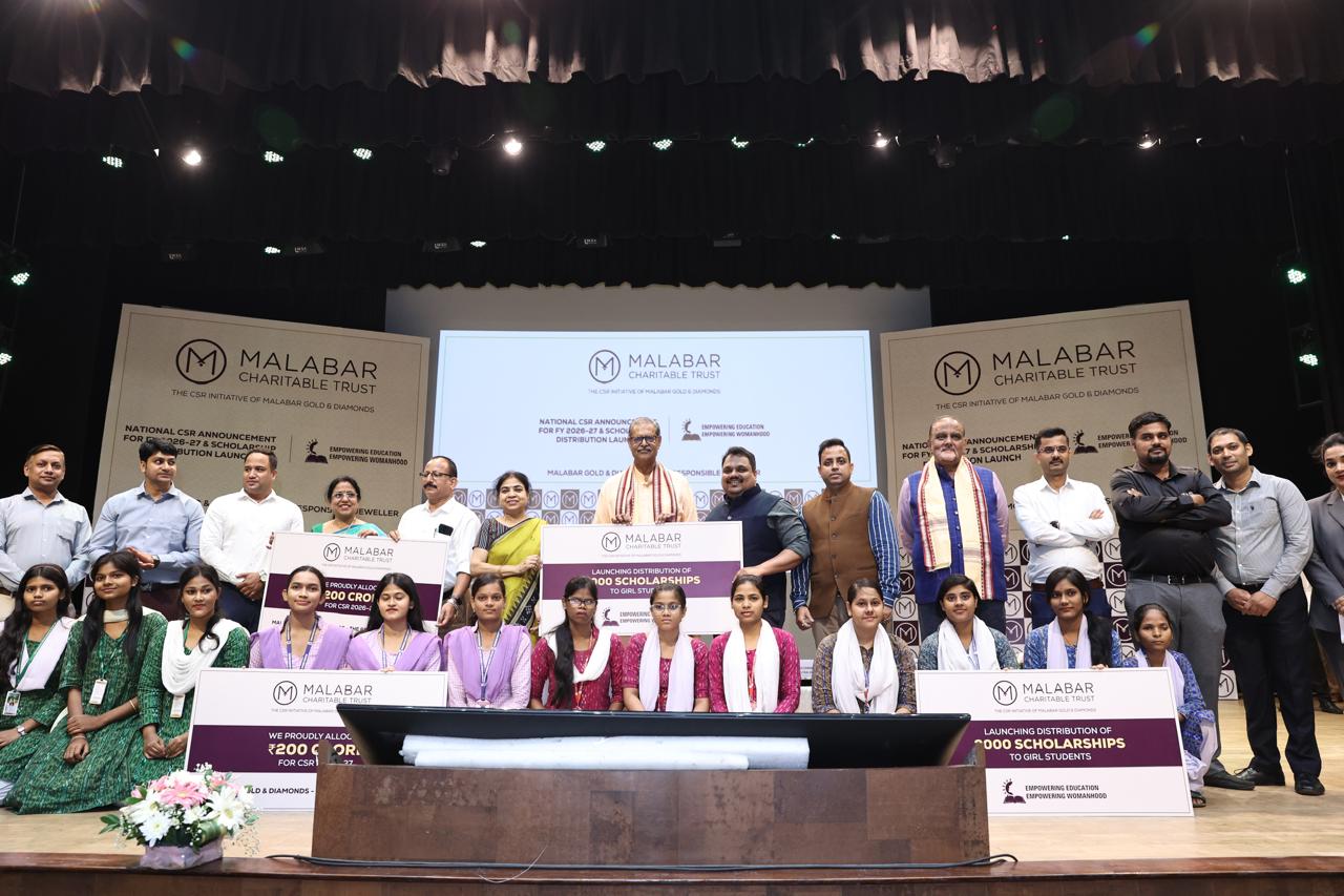 Bhubaneswar : 08 April 2026( Pratyusha Bureau) Malabar Gold & Diamonds, the world’s fifth-largest jewellery retail groupand a responsible jewellery brand, today announced its East Region Scholarship Programme at RamaDevi Women’s University in Bhubaneswar. The initiative will support 2,000 students with an investmentof 1.8 crore, as part of its 200 crore National CSR commitment for FY 2026-27. The National CSRprogramme spans 3,000+ locations across 19 states and is expected to benefit over 2 lakh people, with astrong focus on education alongside initiatives in hunger relief, healthcare, housing, and environmentalprotection. Key efforts include scholarships for 33,000 girls, expansion of micro-learning centres forstreet children in partnership with Pratham Education Foundation, and implementation through theMalabar Charitable Trust.The Bhubaneswar event was held in the presence of Shri Kanak Vardhan Singh Deo, Deputy ChiefMinister of Odisha, along with senior representatives from the Group, invited dignitaries, and membersof the academic community.At the regional level, the Group’s CSR initiatives across East India extend beyond scholarships to includeprogrammes in hunger eradication, education support, and access to essential resources. In Jharkhand,it operates 217 micro-learning centres supporting 9,169 students, provides 7,109 meals per day acrosstwo locations, and has developed 25 drinking water wells benefiting 1,065 individuals.In Odisha, 183micro-learning centres support 5,738 students, along with 5,017 meals per day across five locations and132 drinking water wells benefiting 2,511 individuals. In West Bengal, the Group runs 192 micro-learningcentres supporting 7,501 students, provides 6,292 meals per day across two locations, and hasdeveloped 402 drinking water wells benefiting 9,446 individuals.Commenting on the initiative, Shri Kanak Vardhan Singh Deo, Deputy Chief Minister of Odisha, said,”Initiatives that focus on education, nutrition, and access to essential resources play an important role instrengthening communities at the grassroots level. Programmes such as these contribute meaningfullytowards improving access to education and supporting inclusive development.”M. P. Ahammad, Chairman, Malabar Group, said, “Education remains one of the most effective ways tocreate long-term impact at both an individual and community level. Through our scholarshipprogrammes, we aim to support students who have the ability to succeed but require financialassistance to continue their studies.”The Group’s CSR activities span education, hunger eradication, healthcare, housing, womenempowerment, and environmental protection, with five percent of its net trading profit allocatedtowards these initiatives.With the East Region Scholarship Programme in Bhubaneswar, Malabar Gold & Diamonds continues tostrengthen its education-focused CSR efforts across regional markets, ensuring structured andconsistent support for students.